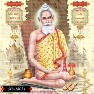 In this portrait, Loknath Thakur’s divine essence is captured beautifully. His serene face embodies eternal wisdom and tranquility. The aura around him radiates peace and heavenly grace. This image invites the viewer into a state of spiritual stillness.