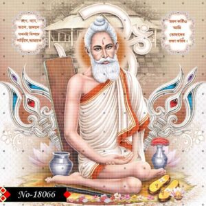 The portrait shines with divine radiance, presenting Loknath Thakur in true grace. His gentle face speaks of compassion and love for humanity. Every feature reflects purity and timeless elegance. This image inspires the soul toward peace and devotion.