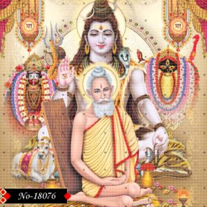 The portrait shines with divine radiance, presenting Loknath Thakur in true grace. His gentle face speaks of compassion and love for humanity. Every feature reflects purity and timeless elegance. This image inspires the soul toward peace and devotion.
