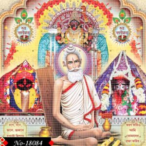 In this portrait, Loknath Thakur’s divine essence is captured beautifully. His serene face embodies eternal wisdom and tranquility. The aura around him radiates peace and heavenly grace. This image invites the viewer into a state of spiritual stillness.