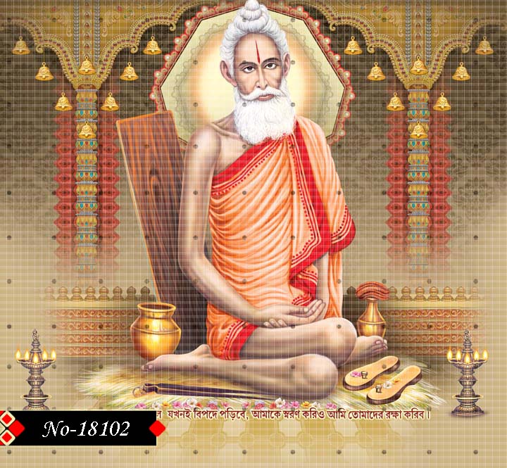 The portrait of Loknath Thakur glows with divine grace, reflecting peace, purity, and spiritual elegance. Every detail of the artwork enhances its sacred charm and timeless beauty.