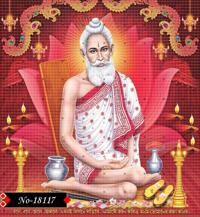 The portrait shines with divine radiance, presenting Loknath Thakur in true grace. His gentle face speaks of compassion and love for humanity. Every feature reflects purity and timeless elegance. This image inspires the soul toward peace and devotion.