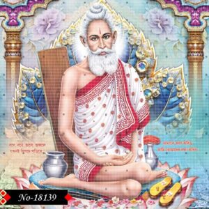 A heavenly glow surrounds the portrait of Loknath Thakur, making it appear timeless. His peaceful expression inspires faith, surrender, and devotion. The softness of his features radiates compassion and divine purity. Looking at this image feels like experiencing serenity itself.