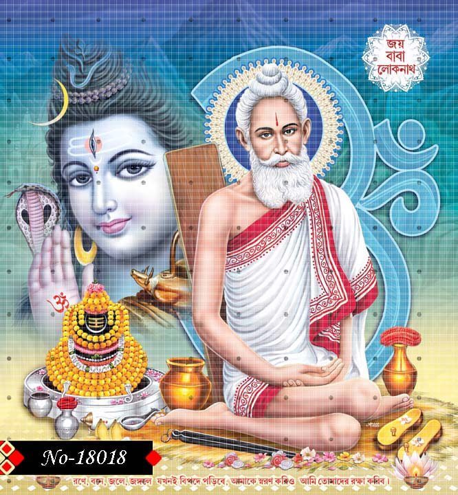 The portrait of Loknath Thakur glows with divine grace, reflecting peace, purity, and spiritual elegance. Every detail of the artwork enhances its sacred charm and timeless beauty.