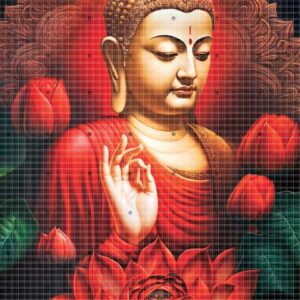 Lord Buddha is featured in this poster with a silent spiritual glow.
