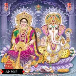 Lord Ganesha and Goddess Lakshmi are depicted here in a divine union of wisdom and wealth. Their elegant postures, adorned in dazzling ornaments, exude sacred dignity and prosperity. With one glance, they inspire strength, devotion, and abundance. Ganesha’s blessing hand invites clarity, while Lakshmi’s serene expression promises grace. This image serves as a spiritual guide, reminding us of life’s higher purpose. Together, they symbolize auspicious beginnings and the blessings that follow. Their aura radiates warmth and divine love. A masterpiece of spiritual symbolism.