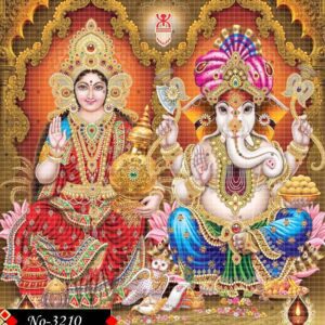 This divine portrayal features Lord Ganesha and Goddess Lakshmi seated gracefully together. Both are resplendent in traditional attire, adorned with luminous jewelry that reflects divine prosperity. Lord Ganesha represents wisdom and obstacle removal, while Goddess Lakshmi symbolizes wealth and abundance. Their serene faces radiate compassion and peace. This image is a beacon of fortune, spiritual harmony, and sacred grace.