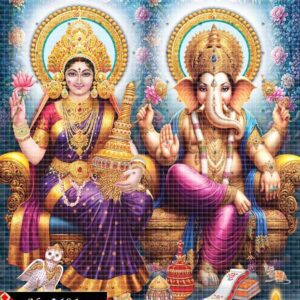 This elegant divine image portrays Lord Ganesha and Goddess Lakshmi in sublime harmony. Their adornments sparkle with devotion and tradition. Ganesha’s wise presence and Lakshmi’s nurturing glow create a divine aura. Their blessings extend across time, faith, and space. The artwork breathes sacred energy into every detail. It inspires joy, grace, and balance. A spiritual expression of Hindu tradition. An image that brings divine light into any setting.