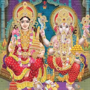 This divine portrayal of Lord Ganesha and Goddess Lakshmi radiates serenity and sacred charm. Adorned in rich attire and glowing ornaments, they embody wisdom and prosperity. Ganesha’s presence removes life’s hurdles, while Lakshmi bestows abundance and wealth. Their graceful postures and blessings create an aura of divine peace. Together, they represent balance, fulfillment, and spiritual grace. Their calm expressions uplift the soul with hope and faith. This image is a visual prayer for success and harmony. A timeless symbol of devotion and blessings.