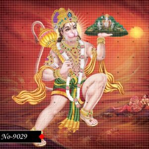 In this powerful image, Lord Hanuman is seen soaring through the sky with immense energy.