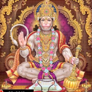 Lord Hanuman is portrayed seated in a divine golden throne 9019