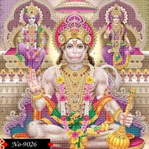 Lord Hanuman sits in a meditative posture adorned with radiant gold and pearl jewelry 9026