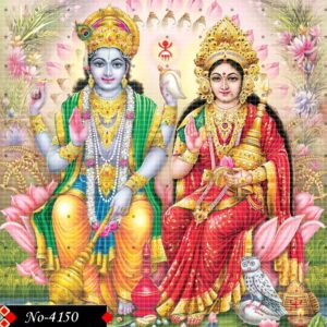 This ethereal representation of Vishnu and Lakshmi brings forth the message of sustenance and prosperity. Vishnu’s regal pose and divine ornaments signify protection and guidance, while Lakshmi’s graceful form reflects nurturing abundance. A perfect spiritual depiction to inspire faith in the eternal forces of good.