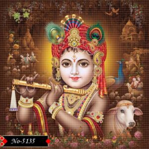 A captivating digital artwork of Lord Krishna in his child form with a charming, innocent face that radiates peace. His attire, adorned with golden jewelry and vibrant colors, brings out the divine splendor of Indian mythology, filling the atmosphere with a serene, spiritual essence.