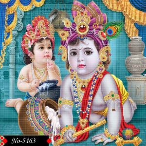 Seated gracefully, Lord Krishna shines with innocence and spiritual light. The rich cultural attire and glowing jewelry reflect devotion, beauty, and deep spiritual significance. His radiant smile and peaceful aura create a sacred atmosphere that warms the heart and soothes the soul.
