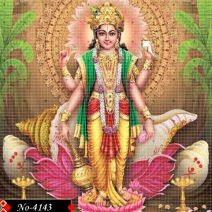 This divine image showcases Lord Vishnu, the Preserver of the Universe in Hinduism, standing in a majestic and serene posture. He is adorned with radiant ornaments and rich, glowing garments that reflect his celestial glory. In his four hands, he holds the gada (mace), shankha (conch), chakra (discus), and padma (lotus) — each symbolizing divine virtues and powers. His calm expression and divine aura exude peace, protection, and cosmic harmony. A soft spiritual radiance (divyajyoti) surrounds his form, highlighting his supreme divinity. This sacred artwork is ideal for invoking blessings of balance, strength, and spiritual growth.