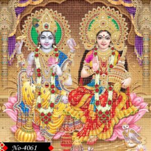 The glowing presence of Goddess Lakshmi, seated beside the ever-compassionate Vishnu, fills the heart with spiritual richness. Their unity in this image is not just of divine love but of cosmic purpose—upholding the universe with grace and wisdom.