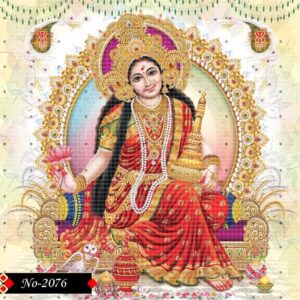 Seated on a decorated lotus throne, Maa Lakshmi exudes radiance.