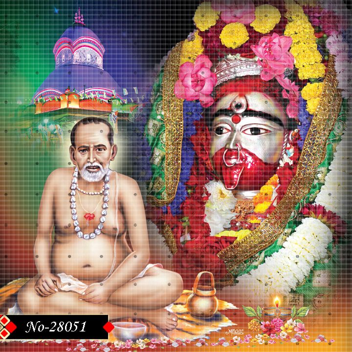 The image highlights Mata Tara, adorned with divine ornaments, a majestic crown, and garlands of flowers that emphasize her celestial aura. Her expression shines with compassion while also carrying the strength of a protector. Alongside her is Sadhok Bama Khyapa, whose calm presence, sacred beads, and radiant halo reflect wisdom and devotion. This portrayal symbolizes blessings, power, and eternal grace. The entire composition radiates serenity and faith.