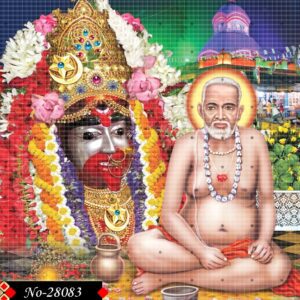 The Goddess Mata Tara appears radiant with her magnificent crown, detailed ornaments, and flower adornments. Her expression embodies the balance of love and strength, granting protection and peace. Near her is Sadhok Bama Khyapa, portrayed with prayer beads, a glowing halo, and a peaceful aura. Together, they form a vision of divine connection and devotion. The background enhances the sanctity of the scene. This sacred imagery resonates with purity and eternal blessings.