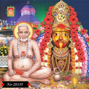 In this image Mata Tara appears resplendent with her crown, jewels, and floral embellishments, radiating unmatched grace. Her expression balances kindness and divine authority, offering comfort to her devotees. Close to her is Bama Khyapa, portrayed with deep spiritual energy, sacred beads, and a luminous halo. Together, they represent the eternal link between the divine mother and the true seeker. The imagery evokes peace, devotion, and reverence. The divine atmosphere fills the scene with sacred energy.