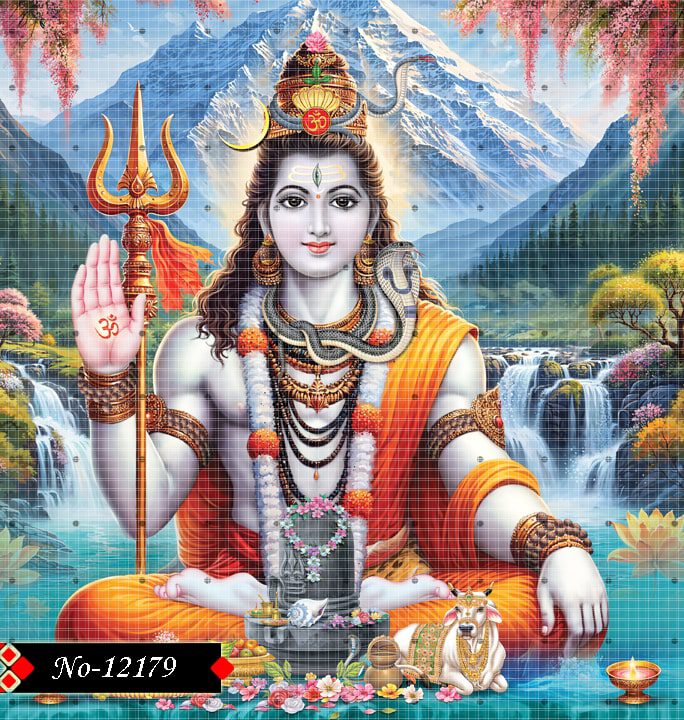 The image of Mahadev shines with a mystical glow that draws the soul closer to the divine. His presence feels infinite, embodying both grace and boundless energy. The serene expression reflects a calmness that touches the deepest corners of the heart. Sacred elements around him enhance the grandeur, giving the artwork a celestial radiance. This portrayal captures the eternal magnificence of Devadidev with unmatched beauty.