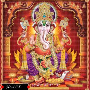 This vibrant artwork portrays Lord Ganesha seated in a divine and regal posture, exuding blessings and spiritual grace. This divine image beautifully embodies wisdom, auspiciousness, and devotion.