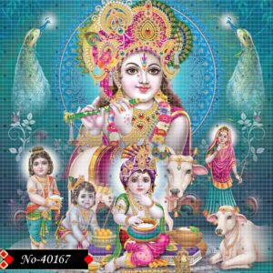 This sacred image features the majestic presence of Lord Krishna, radiating peace.