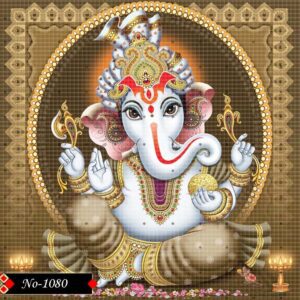 This stunning depiction of Lord Ganesha exudes royalty and strength, adorned with intricate golden ornaments and a divine aura. The rich golden-brown tones create an atmosphere of warmth and reverence, while Ganesha’s calm expression and symbolic gestures invite wisdom, protection, and prosperity. An ideal choice for spaces seeking divine charm and spiritual energy.
