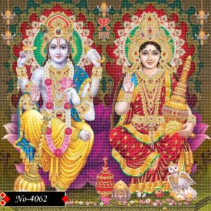The glowing presence of Goddess Lakshmi, seated beside the ever-compassionate Vishnu, fills the heart with spiritual richness. Their unity in this image is not just of divine love but of cosmic purpose—upholding the universe with grace and wisdom.