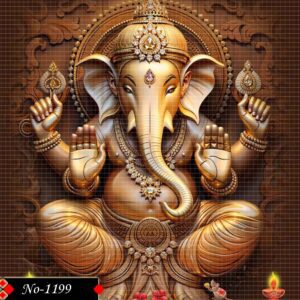 This peaceful portrayal of Lord Ganesha captures His divine presence with a calm and earthy color palette.