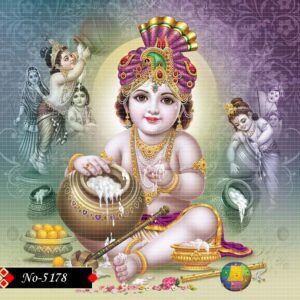 A beautifully detailed artwork that captures little Lord Krishna’s mythological beauty in a modern digital style. His pose reflects grace, while the elaborate ornaments and vibrant colors reflect India’s rich spiritual tradition, making it perfect for sacred spaces and festive décor.