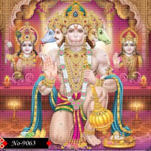 This detailed depiction shows Hanuman in his Panchmukhi avatar, a protector from all evils and granter of courage. The five heads symbolize unity of powers—devotion, strength, knowledge, purification, and protection. His glowing eyes, powerful arms, and majestic ornaments emphasize divinity.