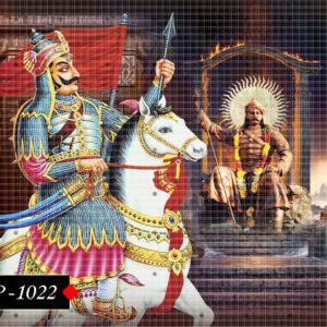 In this powerful image, Maharana Pratap is shown riding his loyal horse Chetak, dressed in full battle armor. He grips a spear, symbolizing his readiness to defend his land and honor. His gaze is focused and fearless, capturing the essence of a true warrior. The image is a tribute to his bravery and undying devotion to his kingdom. His heroic stance continues to inspire generations.