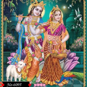 Krishna and Radha stand in blissful devotion,