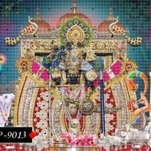 In this divine artwork, Sanwaliya Ji stands peacefully, wearing rich garments and divine ornaments—an image that fills the soul with bhakti.