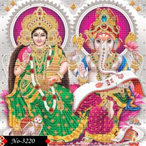 In this captivating image, Ganesha and Lakshmi unite in grace and glory. Seated in perfect symmetry, they embody both inner peace and worldly success. Ganesha’s wisdom blends with Lakshmi’s prosperity, creating a powerful aura of divine favor. The vibrant colors and intricate details breathe life into the image. Their blessing hands extend peace, joy, and spiritual strength. A perfect depiction of devotion and abundance. Their presence brings harmony to every heart and home. Truly, a celebration of sacred energy.