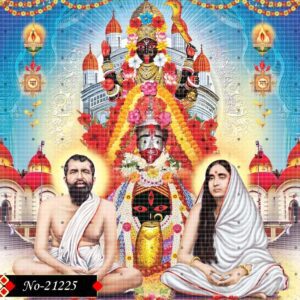 This powerful visual captures Sri Ramakrishna and Sarada Devi beneath the divine light of Goddess Kali. Their expressions reflect deep inner stillness, while the golden tones symbolize grace and spiritual upliftment.