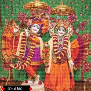 Hindu God Krishna and Radha’s idol in saffron attire with floral garlands.