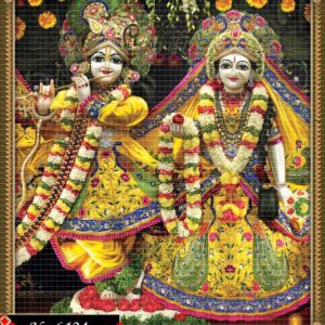 Devotional image showcases Lord Krishna and Radha richly adorned 6124