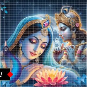This radiant poster captures Radha and Krishna in divine tranquility.