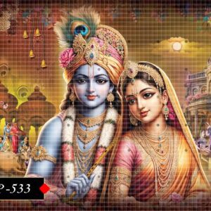 This sacred poster captures the divine interplay of Radha and Krishna.