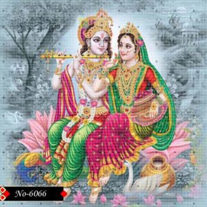 Krishna’s flute casts a magical rhythm, and Radha’s loving gaze completes the picture.