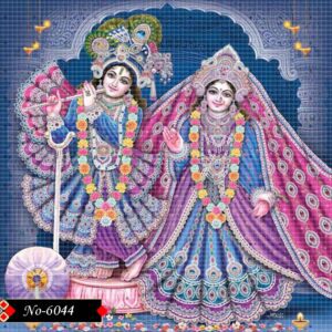 Radha looks on, her face full of devotion and grace.