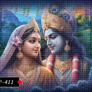 This Radha-Krishna poster brings sacred romance to life.