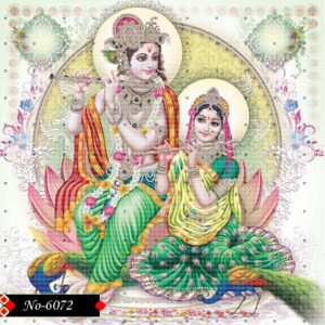 Radha Krishna sit in divine harmony, Wrapped in rich, embroidered garments of love. Their attire sparkles with exquisite detail,
