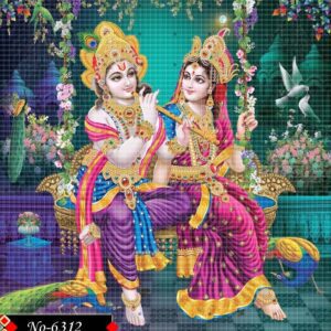 The divine couple Radha Krishna sits , sharing a musical bond.
