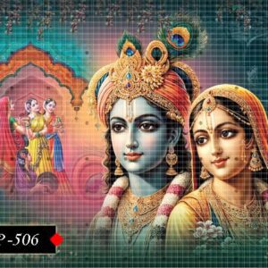 Radha-Krishna’s soft expressions mirror divine unity and affection. 506