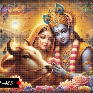 A spiritual poster that illustrates the sacred union of Radha and Krishna.