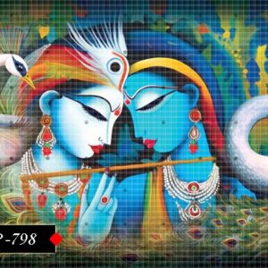 Radha and Krishna are shown in this poster with divine brilliance. Their ornamental attire and serene features exude spiritual power. A glowing presence surrounds them. A captivating image for spiritual inspiration.